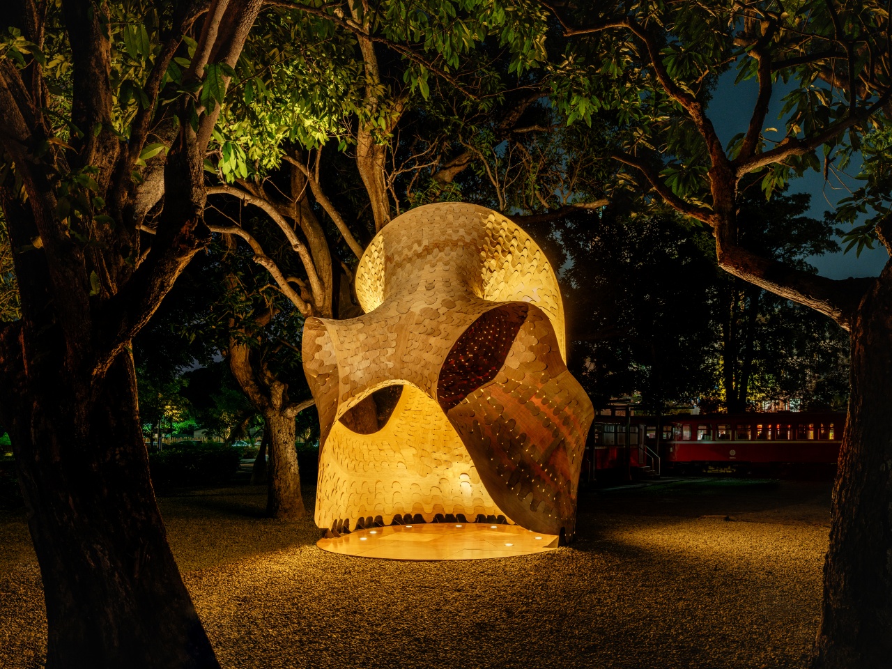 作品列表逐雲|2022構竹林鐵新銳展空間類型藝術裝置設計範疇臨時設施與裝置區域雲嘉南高屏完工年份2022業主社團法人臺灣竹會合作單位指導單位/行政院農業委員會林務局展出地點/阿里山林鐵北門站 嘉義車庫園區作品創作/ROSO機器人建造實驗室策展單位/陳冠帆 結構技師燈具安裝/丞逸照明攝影定影影像 FIXER Photographic Studio